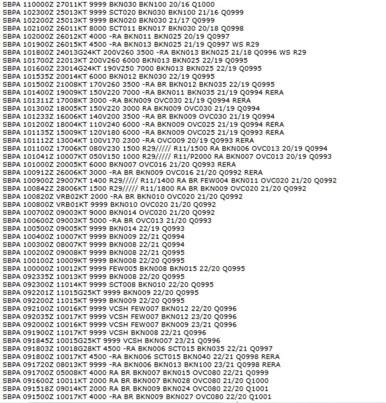 Boletins do Aeroporto Salgado Filho no periodo em que a pressão atmosférica esteve abaixo de 1000 hPa | DECEA/FAB