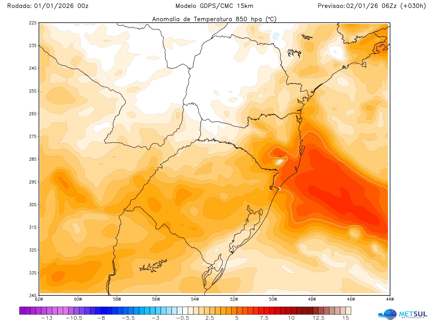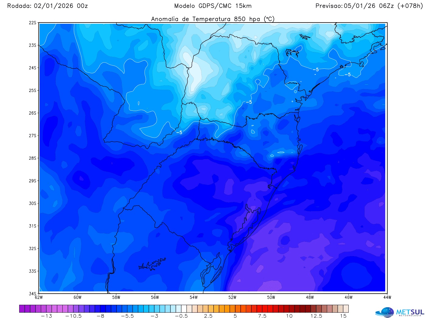 Depois de uma virada de ano com temperatura alta, a temperatura vai ter uma queda bastante acentuada com marcas abaixo do que é normal na climatologia histórica do mês de janeiro.