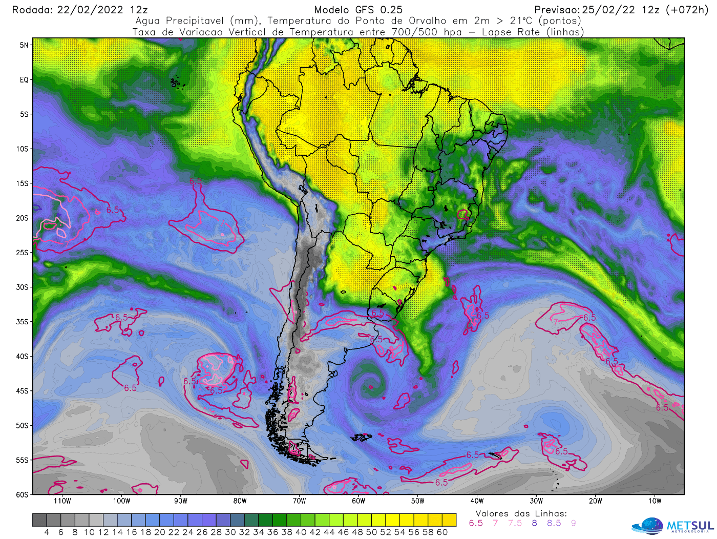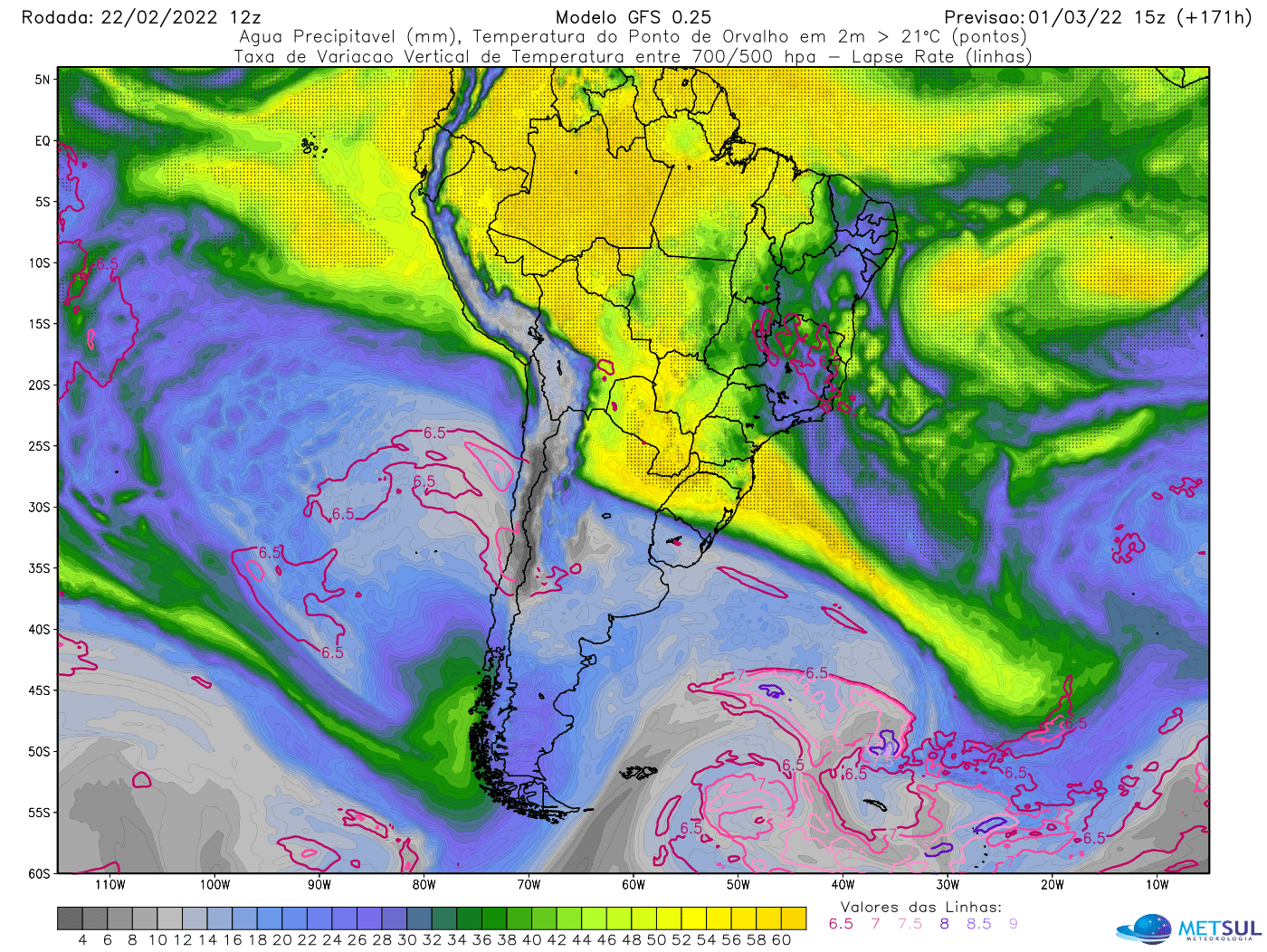 Com isso, a perspectiva é de a chuva aumentar muito no Rio Grande do Sul nestes últimos dias de fevereiro e no começo de março, prevendo-se desde já que os acumulados de precipitação podem ser significativamente elevados em algumas regiões. O aumento da umidade, por outro lado, trará maior risco de temporais isolados com chuva intensa e extrema localizada em curto período, vento forte e granizo.