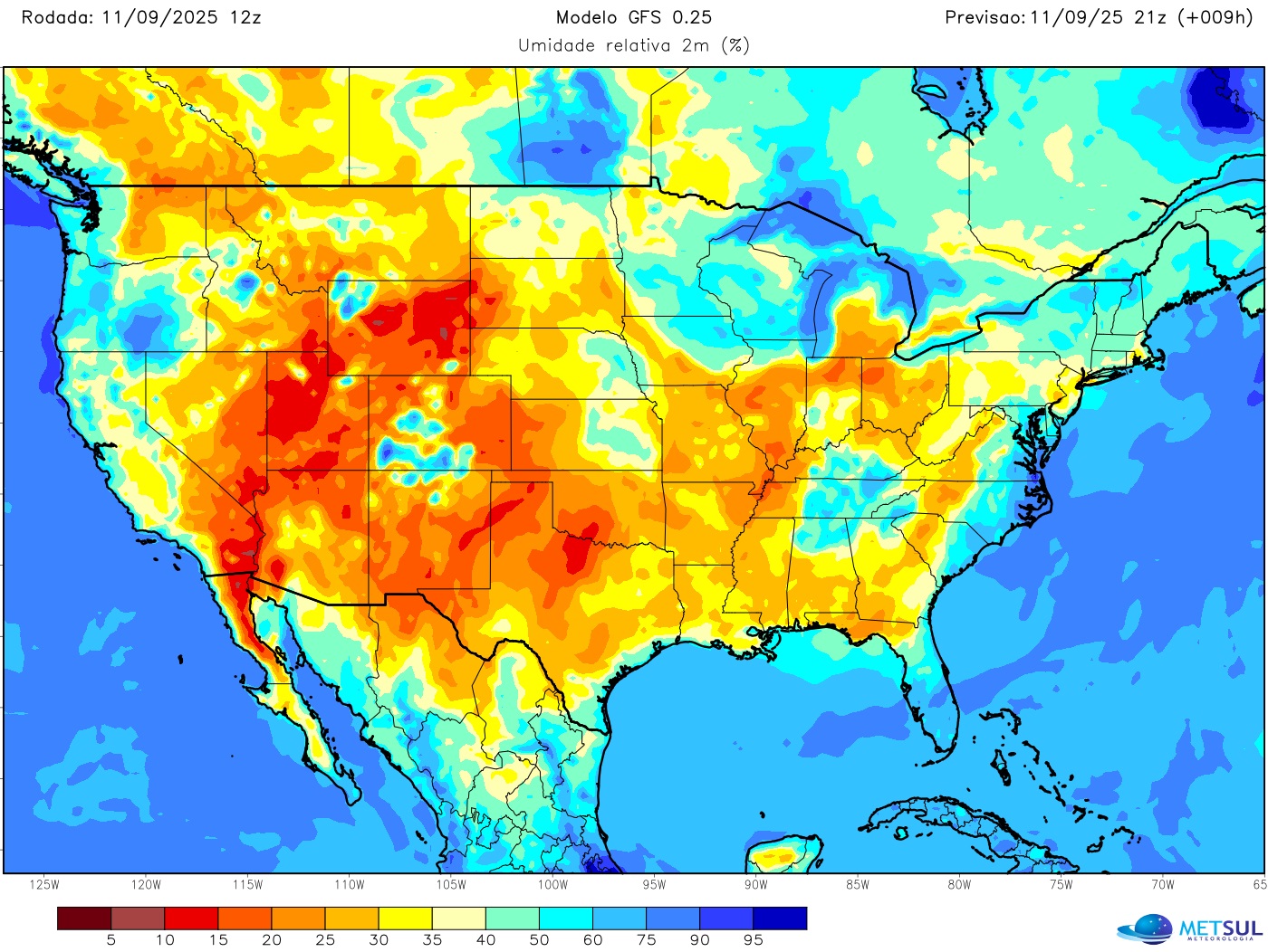 O local mais seco hoje no continente foi, como de hábito, o extremamente árido deserto do Atacama, no Norte do Chile. Dados do aeroporto de El Loa, em Calama, no deserto do Atacama, indicavam umidade de apenas 3% no meio da tarde de hoje.