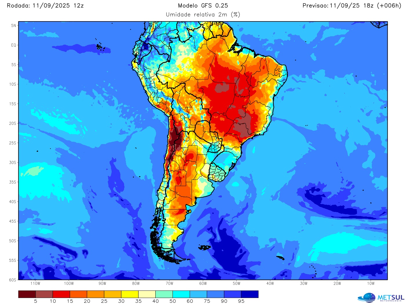 O interior de São Paulo e o Triângulo Mineiro estiveram nesta quinta entre os locais com o ar mais seco em todo o continente com marcas observadas apenas em regiões de deserto das Américas do Sul e do Norte.