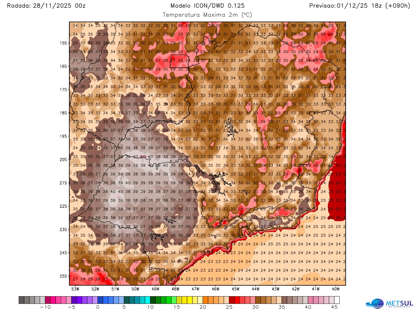 Previsão de máximas do modelo Icon para segunda | METSUL