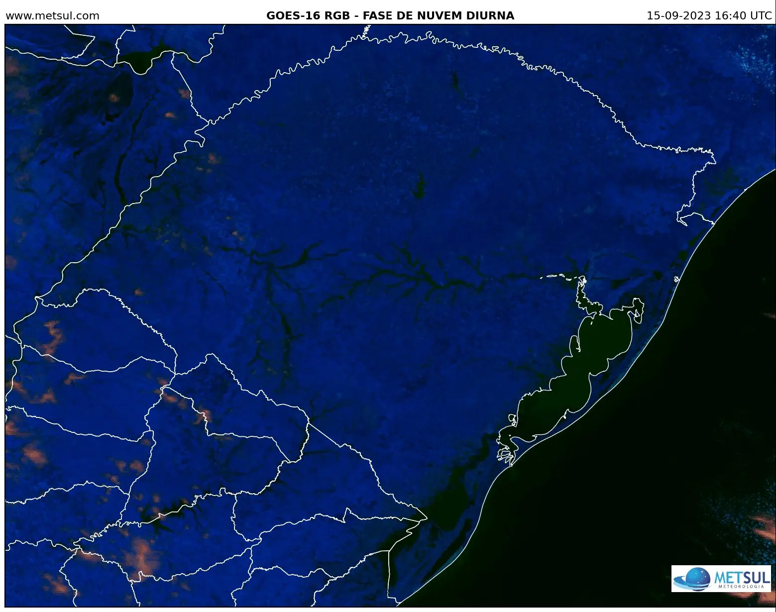 O Rio Grande do Sul teve nesta sexta-feira o primeiro dia de tempo muito aberto e com amplos períodos de céu claro depois do último evento de chuva que afetou mais cidades do Oeste, do Centro e do Su do estado. Com isso, foi possível pela primeira vez observar a partir de imagens de satélite os efeitos da chuva na paisagem do território gaúcho.