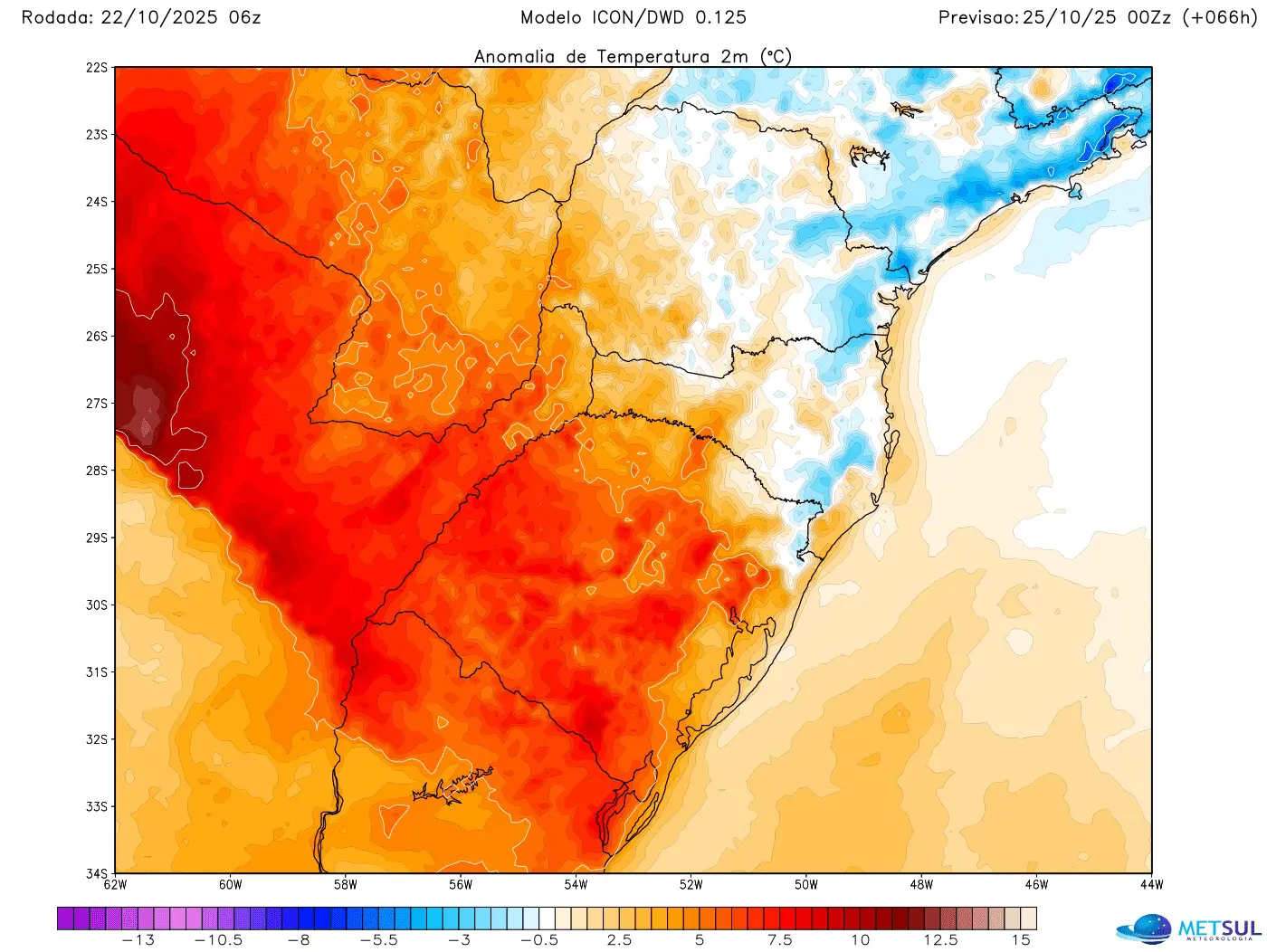 De acordo com a previsão da MetSul, a tarde da sexta deve registrar máximas de 31ºC a 33ºC em vários municípios no Noroeste, Centro, Vales, Campanha, Sul e a Grande Porto Alegre. Em algumas localidades, não são descartadas máximas tão altas quanto 34ºC ou 35ºC.