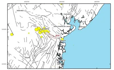 MOs dados sísmicos históricos mostram ainda que a atividade sísmica recente não constitui um evento isolado. Existem 373 registros de terremotos na Bahia, sendo o mais antigo deles, e do Brasil, registrado em Salvador, em 1724.