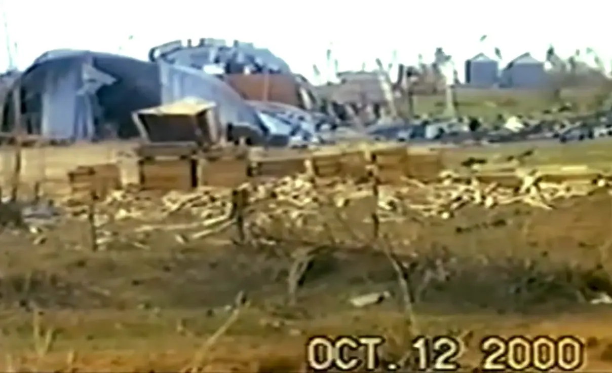 O cenário, segundo relatos da época, lembrava cenas de guerra: galpões desabaram, telhados desapareceram e o chão ficou coberto por destroços e vegetação arrancada.