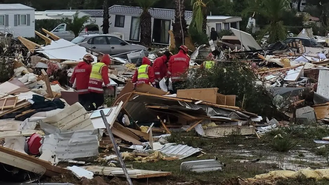 No camping de Albufeira, o tornado deixou seis vítimas: um morto, dois feridos graves e três feridos leves. Segundo o comandante Vítor Vaz Pinto, do Comando Regional do Algarve da Proteção Civil, o grau de destruição no local foi “bastante grande”, com estruturas arrancadas e equipamentos arremessados a distância.