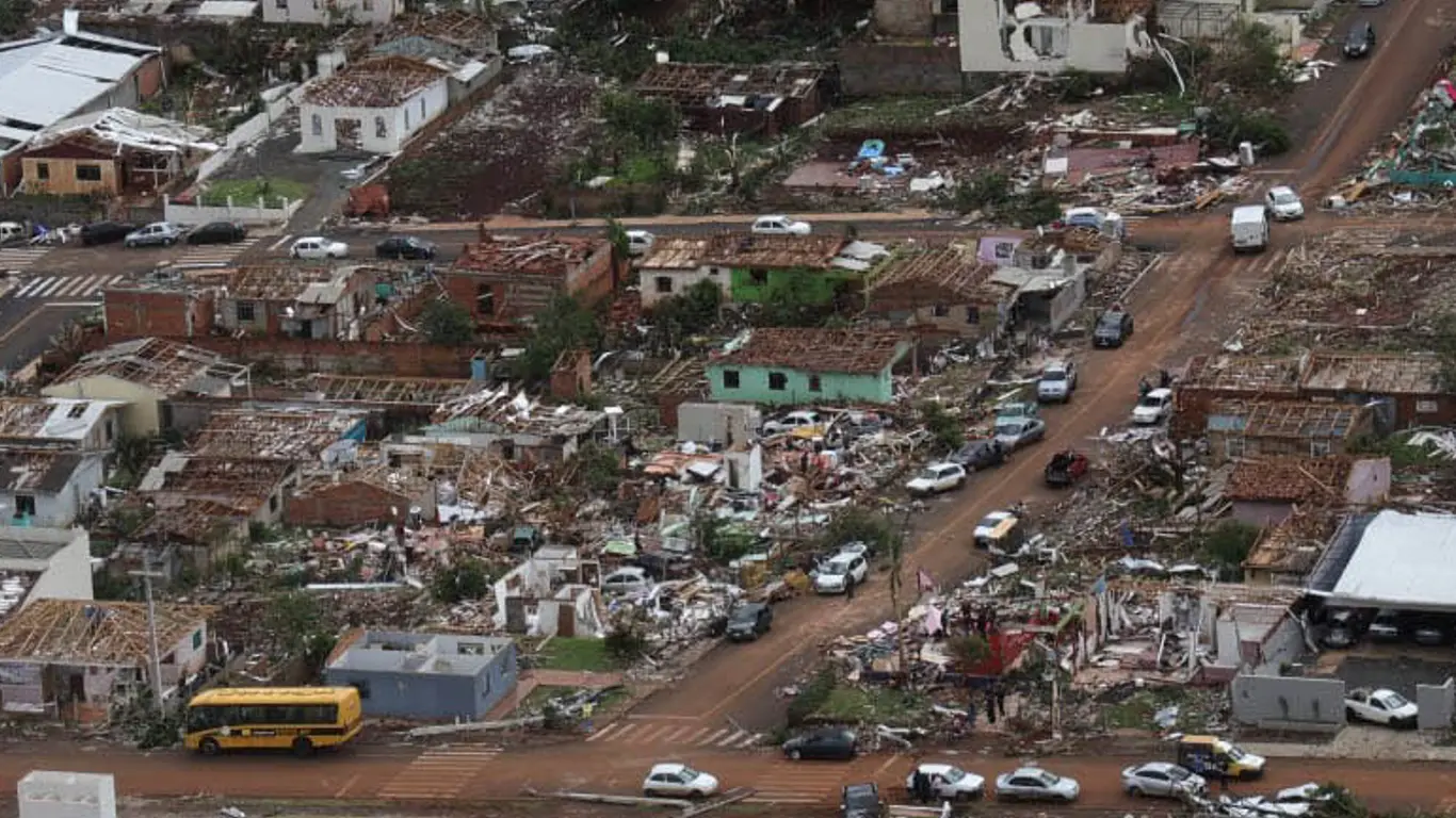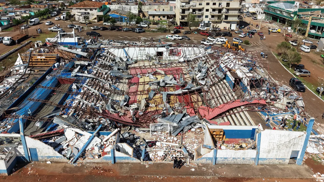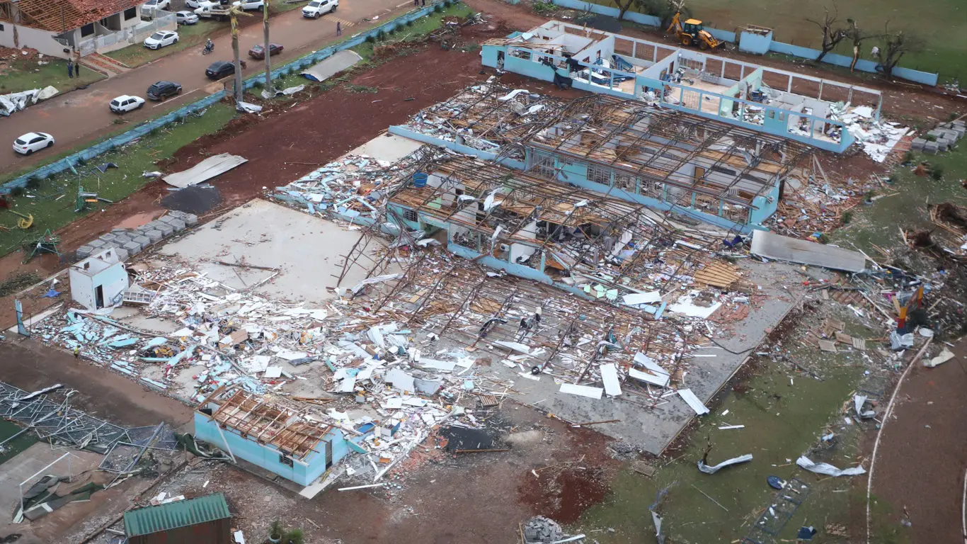 Um violento tornado atingiu no fim da tarde de sexta-feira (7) o município de Rio Bonito do Iguaçu, no Centro-Sul do Paraná, causando devastação e destruindo bairros inteiros da cidade em um dos mais graves episódios de tempo severo da história recente do país.