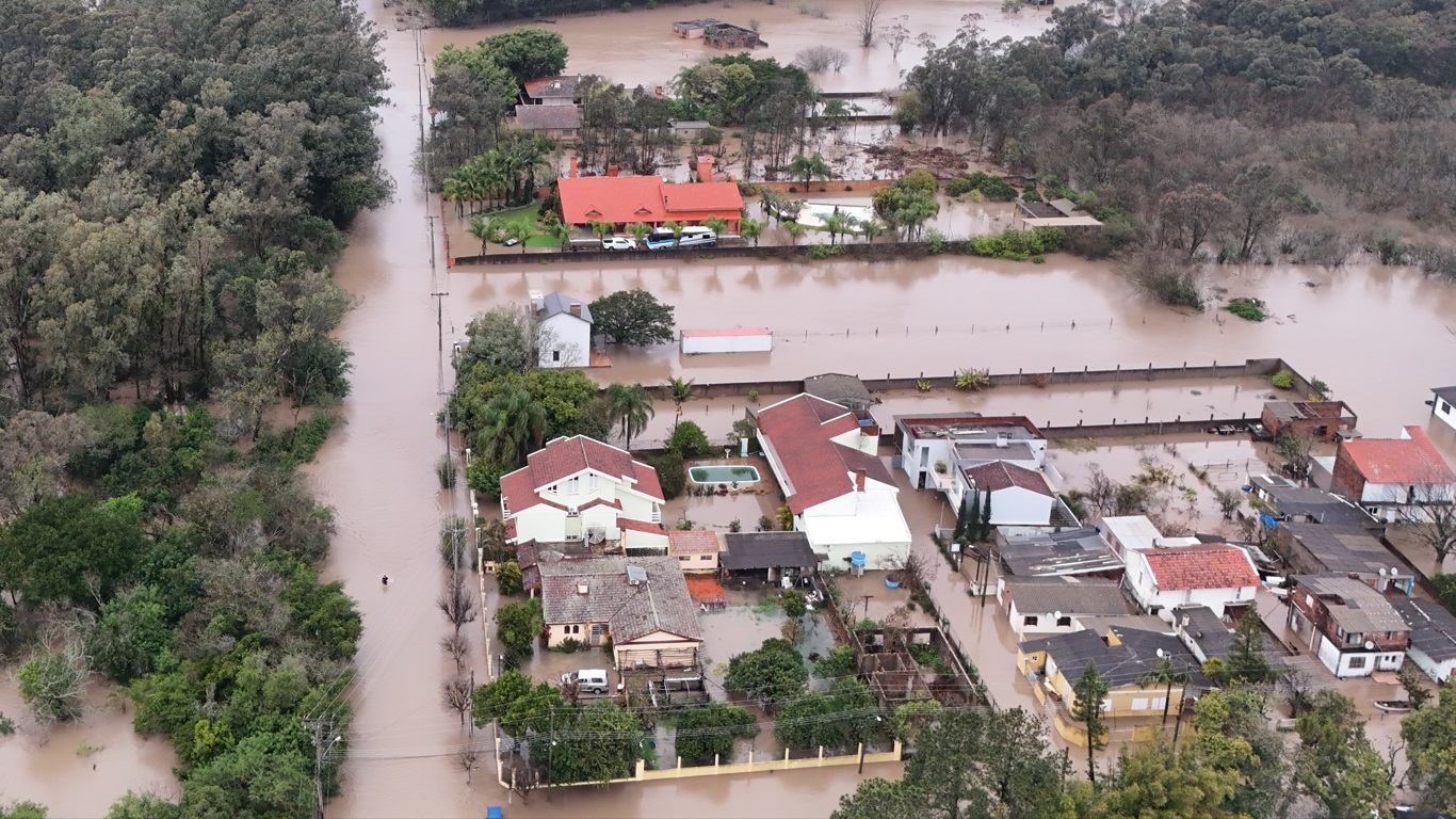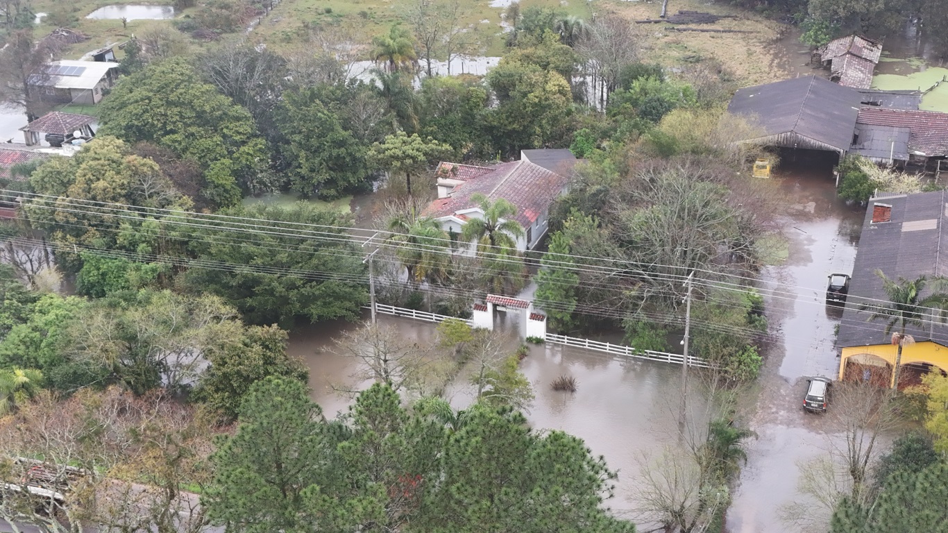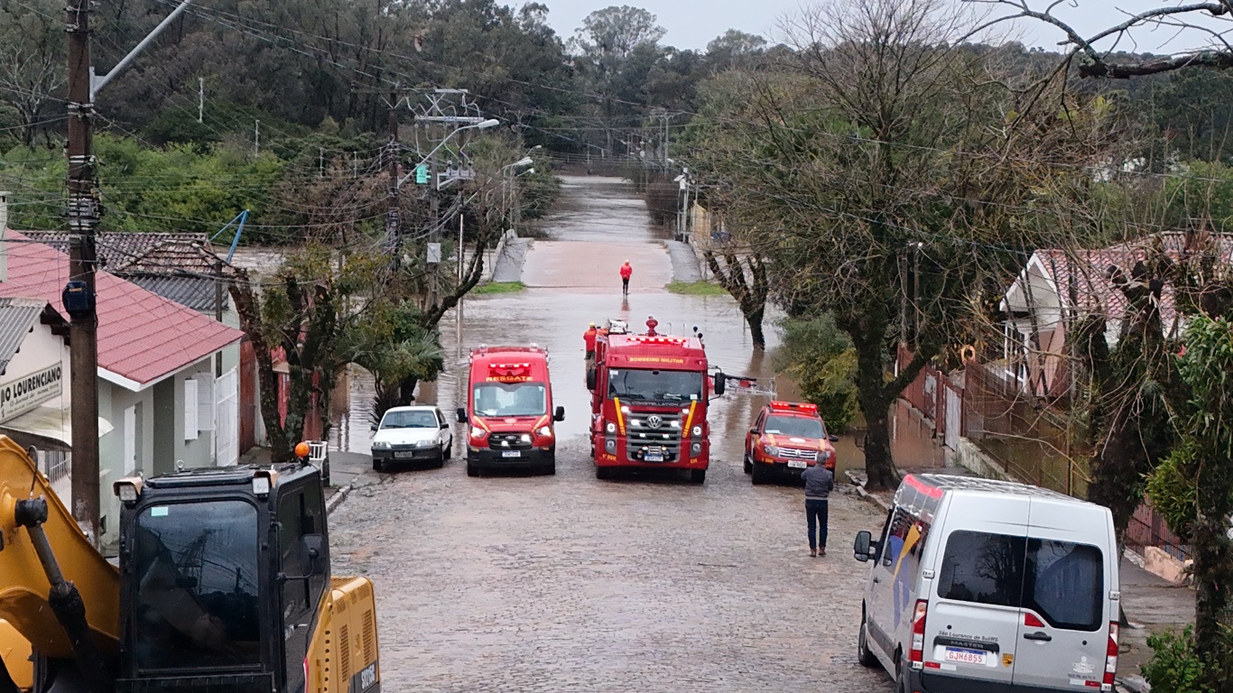 A enchente em São Lourenço do Sul, no Sul do Rio Grande do Sul, provocada pela cheia do Arroio São Lourenço após volumes extremos de chuva, deixou milhares de imóveis alagados e levou a prefeitura a decretar calamidade pública neste sábado. Mais de duas mil casas foram atingidas, com famílias precisando sair às pressas; 17 pessoas estão em abrigo emergencial e outras 22 famílias foram acolhidas por conhecidos, mas o número real de desalojados é maior. O arroio transbordou durante a madrugada, após a água descer da zona rural. Brigada Militar, Bombeiros e Defesa Civil atuam em resgates, enquanto a prefeitura organiza doações e pediu apoio da Marinha. Choveu entre 200 mm e 300 mm no município.