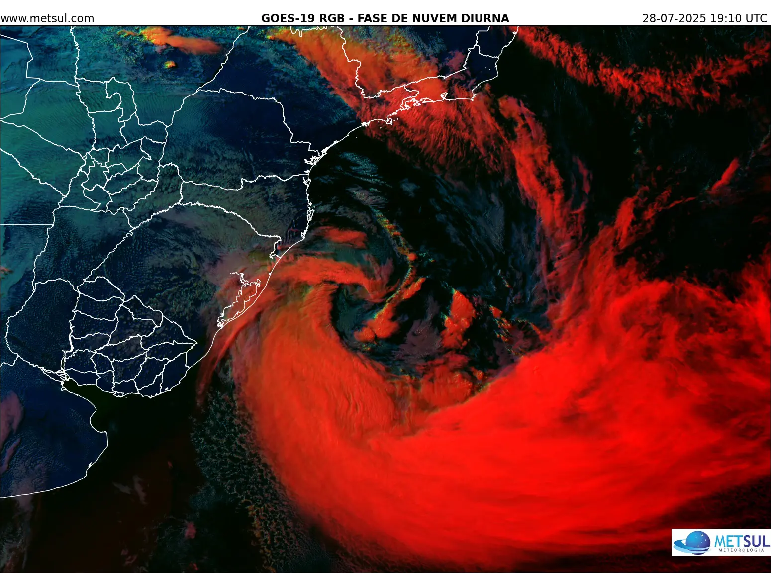 Imagem de satélite do ciclone na costa do Sul do Brasil na tarde de hoje | METSUL
