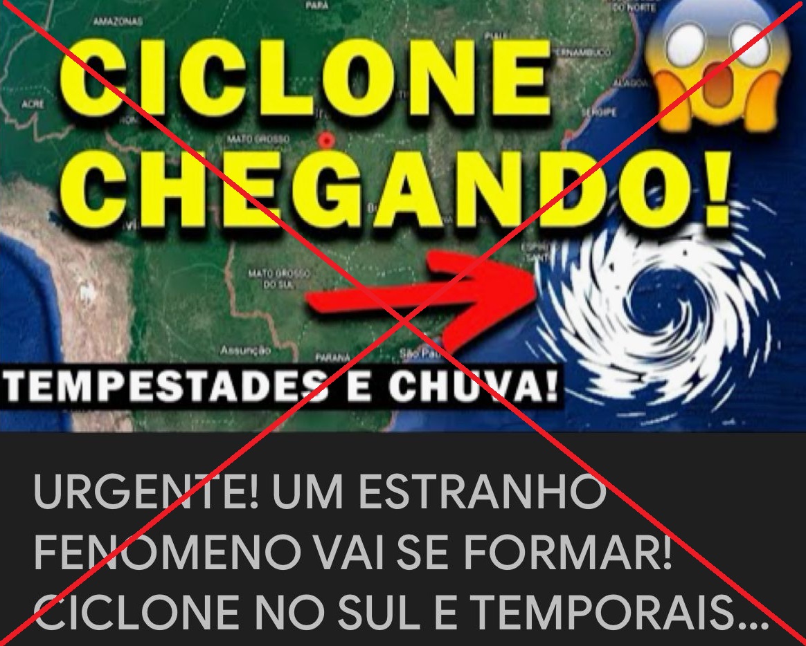 “Urgente! Um estranho fenômeno vai se formar! Ciclone no Sul e temporais no Sudeste!”, diz o título do vídeo publicado na rede social.