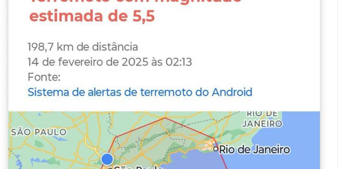 Moradores de São Paulo e do Rio de Janeiro receberam na madrugada desta sexta-feira um alerta pelo celular de um terremoto na costa do estado paulista. O aviso da empresa Google notificou sobre a suposta ocorrência de um abalo sísmico no mar a 55 km de Ubatuba, no litoral de São Paulo, e foi disparado para celulares com sistema operacional Android.