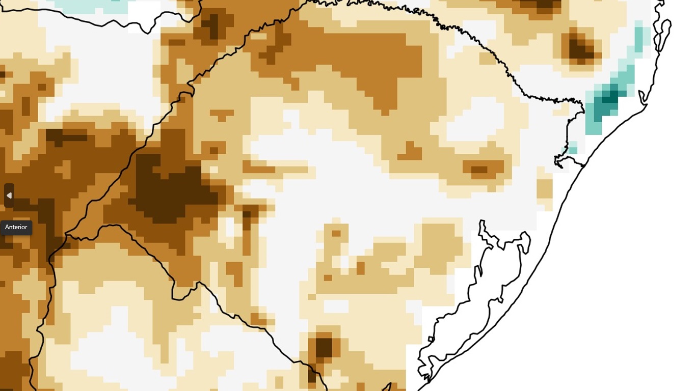 Estiagem se instala em parte do Rio Grande do Sul com precipitação abaixo a muito abaixo da média...